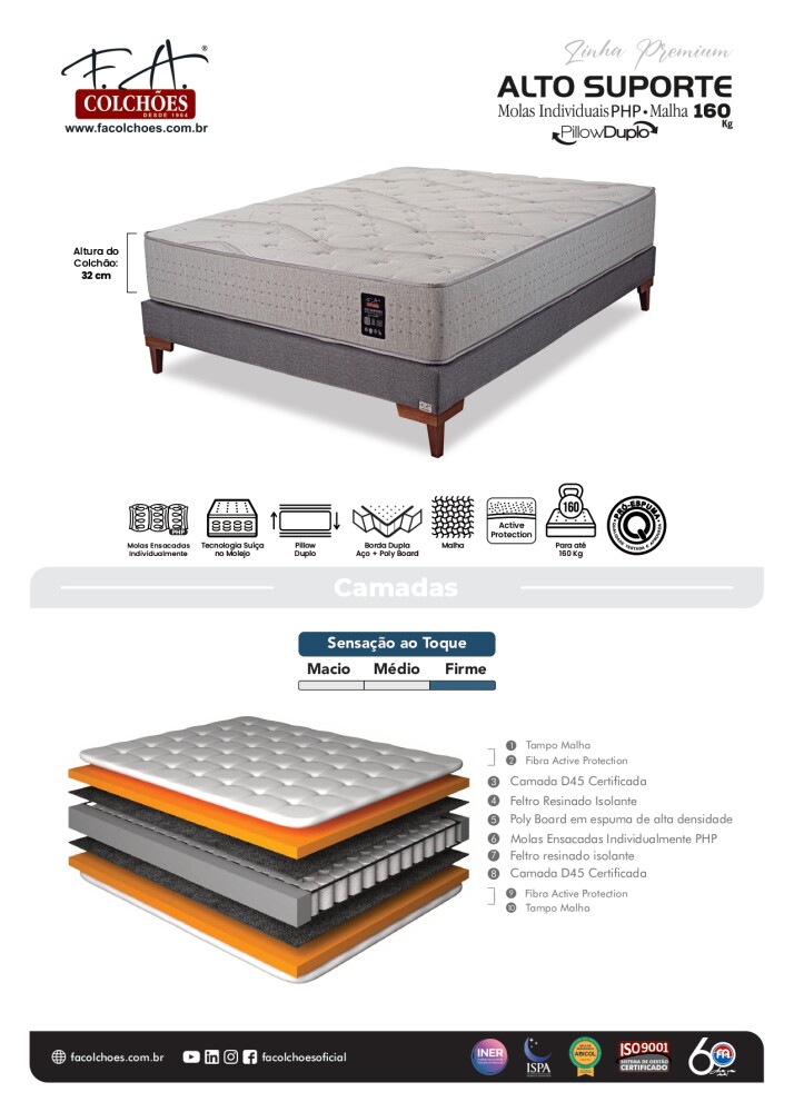 Resortes individuales embolsados PHP: Cada resorte actúa de forma independiente, evitando la transferencia de movimiento. El sistema PHP brinda un 10% más de resistencia que los resortes tradicionales, aumentando la durabilidad del colchón.