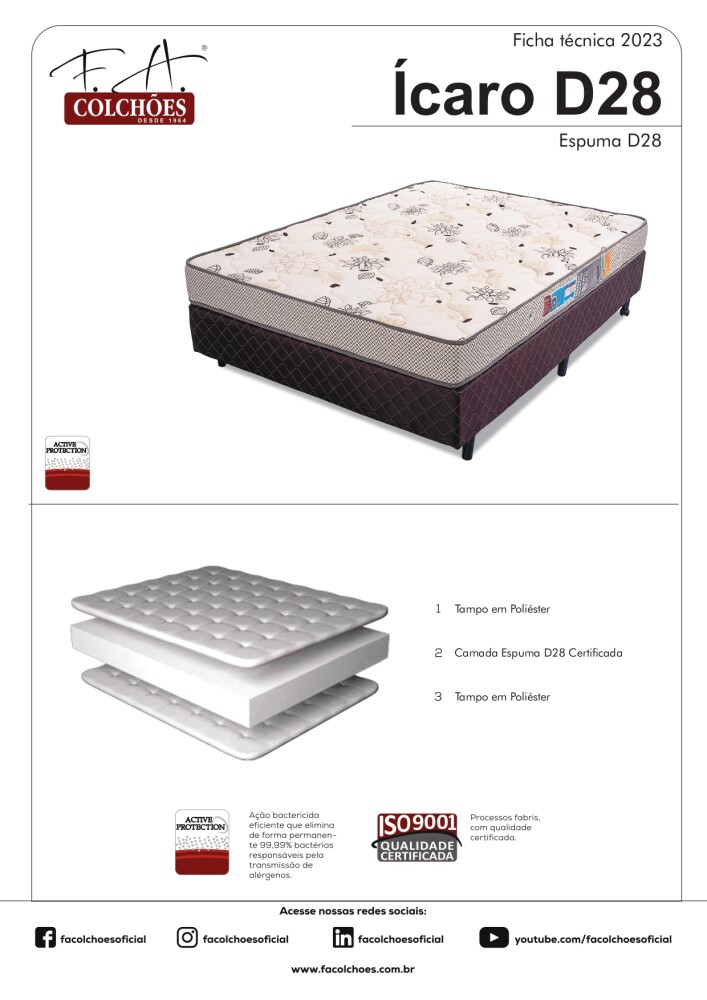 Capa de espuma D28 – Nuestra espuma de alta densidad D28 asegura un soporte excepcional al cuerpo, distribuyendo uniformemente el peso y favoreciendo el correcto alineamiento de la columna durante el descanso.